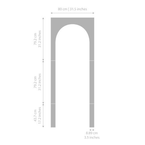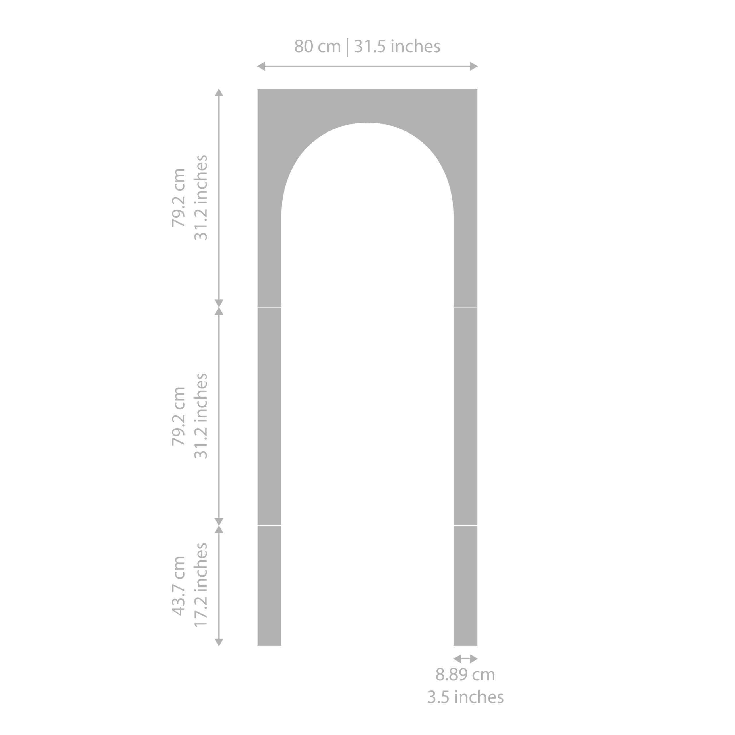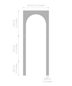 1 plastic arch with the total dimensions 80 x 202.1 cm | 31.5 x 79.6 inches. Each arch comprises 5 pieces with 10 mm | 0.39 inches thickness.