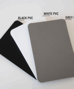 This product is made of 5 mm | 0.20 inches or 10 mm | 0.39 inches thickness plastic and is available in multiple colors (check the colors available for each thickness option in this product on the options). The white option can be easily painted with spray paint for plastics.