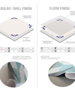 Choose the finish that works best for you: either our regular finish for walls, or our floor finish. Our wall tiles can be applied to a variety of smooth surfaces, including existing tiles and kitchen backsplashes. The floor tiles come with an extra protective layer that provides durability, scratch-resistance, and anti-slip properties for improved safety.