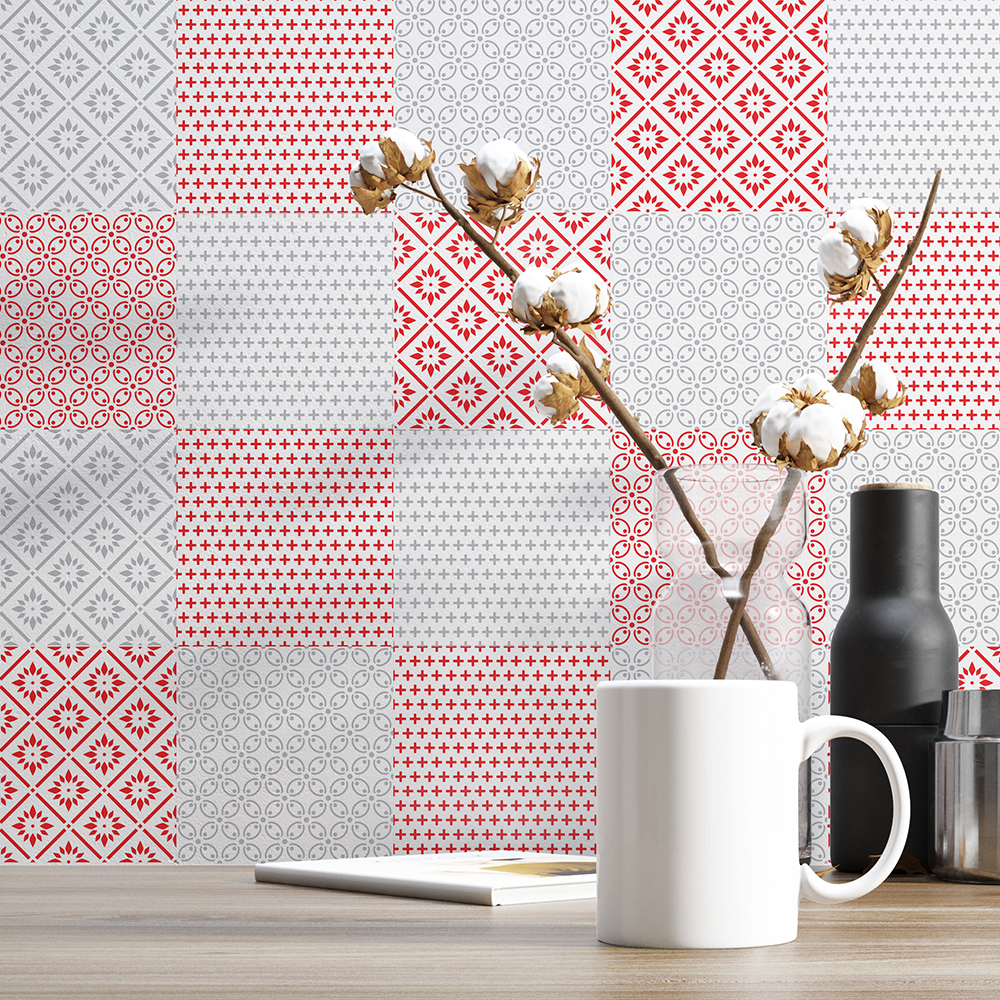Cover Tiles Stickers Red and Grey Patterns
