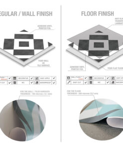 Choose the finish that works best for you: either our regular finish for walls, or our floor finish. Our wall tiles can be applied to a variety of smooth surfaces, including existing tiles and kitchen backsplashes. The floor tiles come with an extra protective layer that provides durability, scratch-resistance, and anti-slip properties for improved safety.