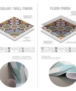 – The production of our tile stickers at different times may vary the shade of the printed colors. In order to ensure that your tiles have the same colors and tones, we recommend that you purchase all the packs you need for your project in the same order.