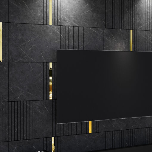 Dark Grey Marble Imitation and Gold Mirror
