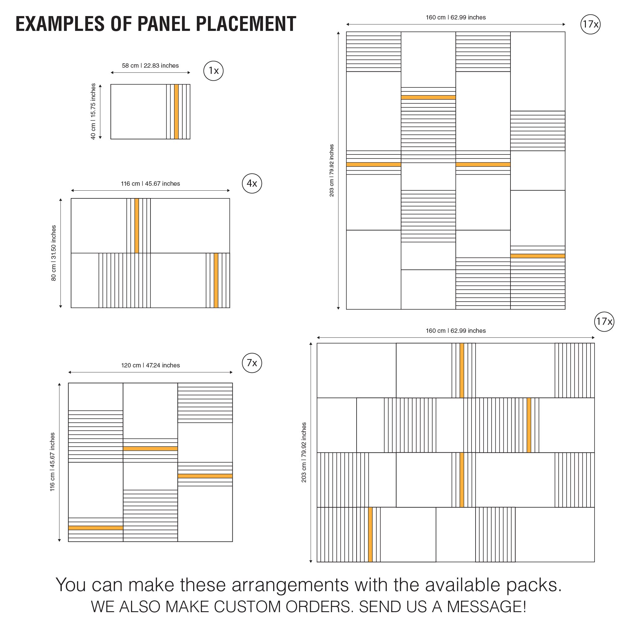1 single panel, a pack of 4, 7, or 17 panels (Check the size of each panel in the images).