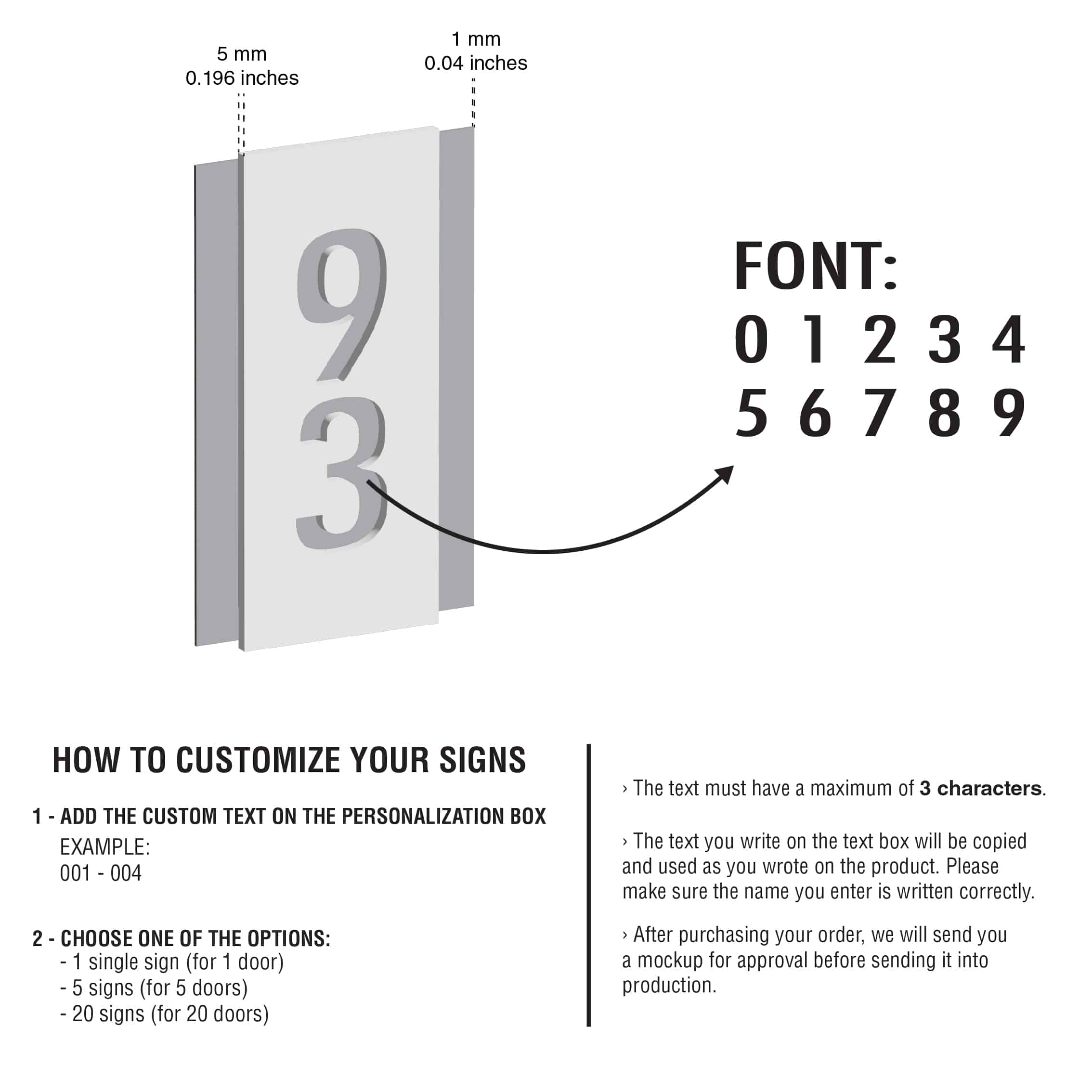 – The numbers you write in the text box will be copied and used as you wrote on the product. Please make sure the name you enter is written correctly.