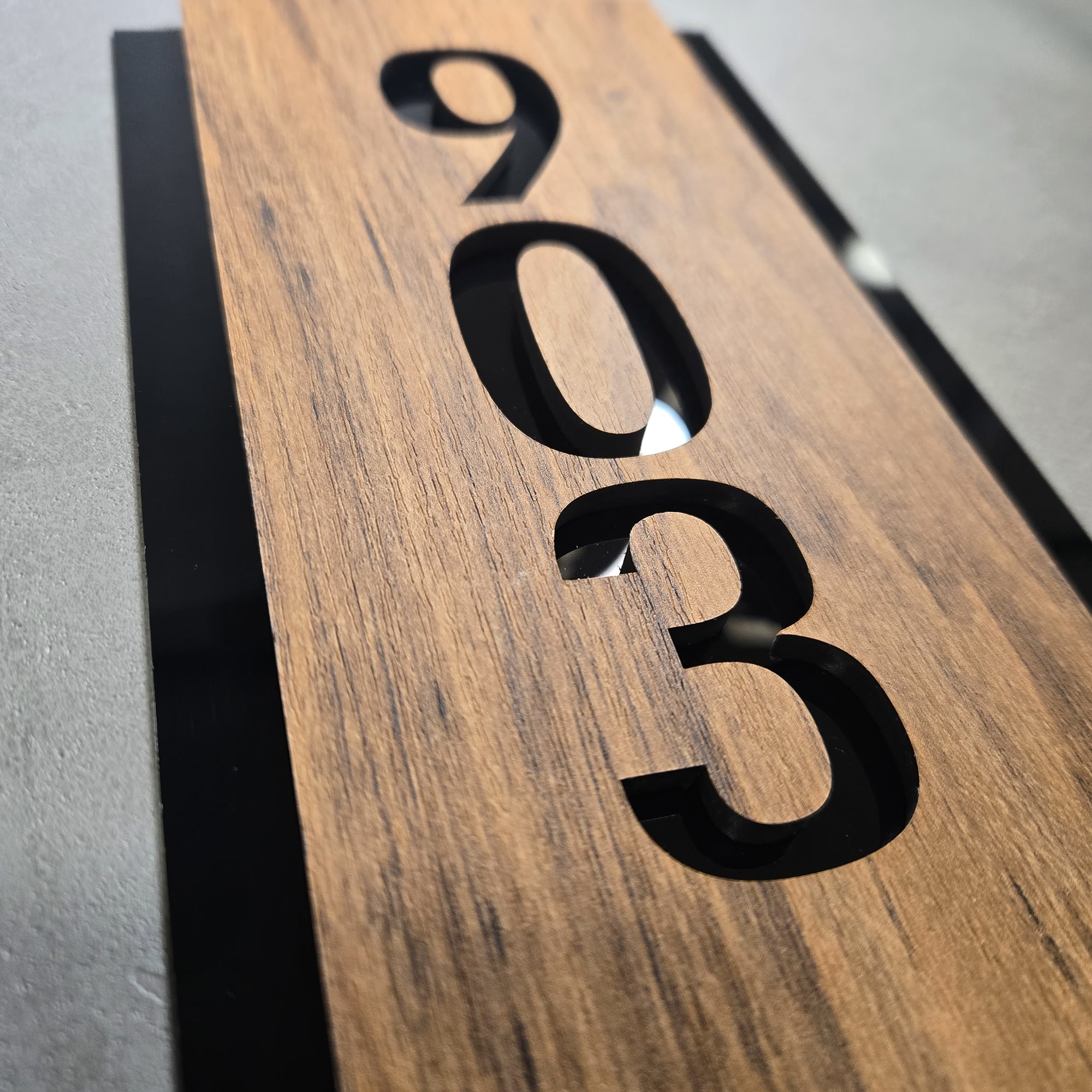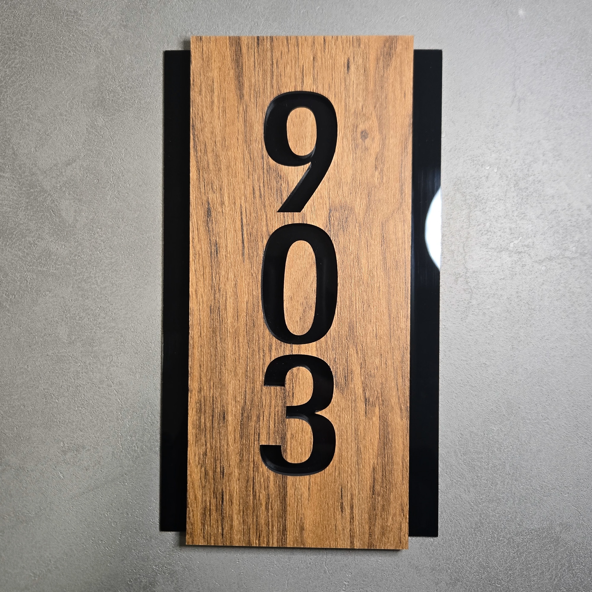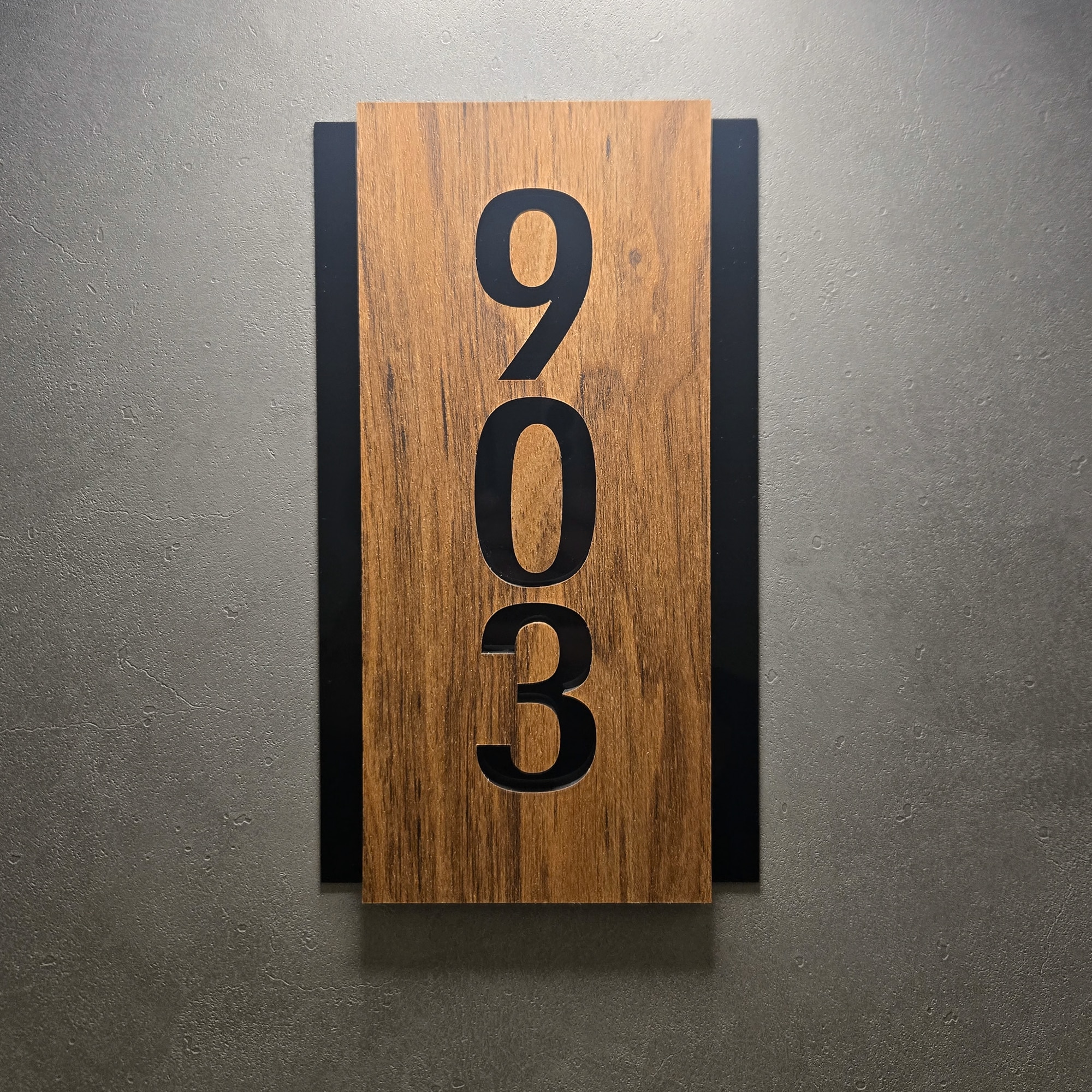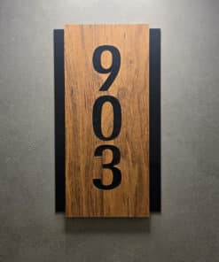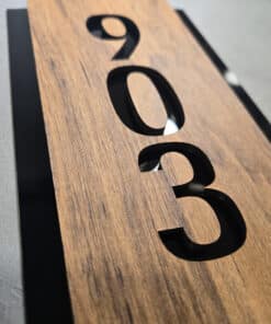 Dark Wood with Black Acrylic Vertical Number Sign