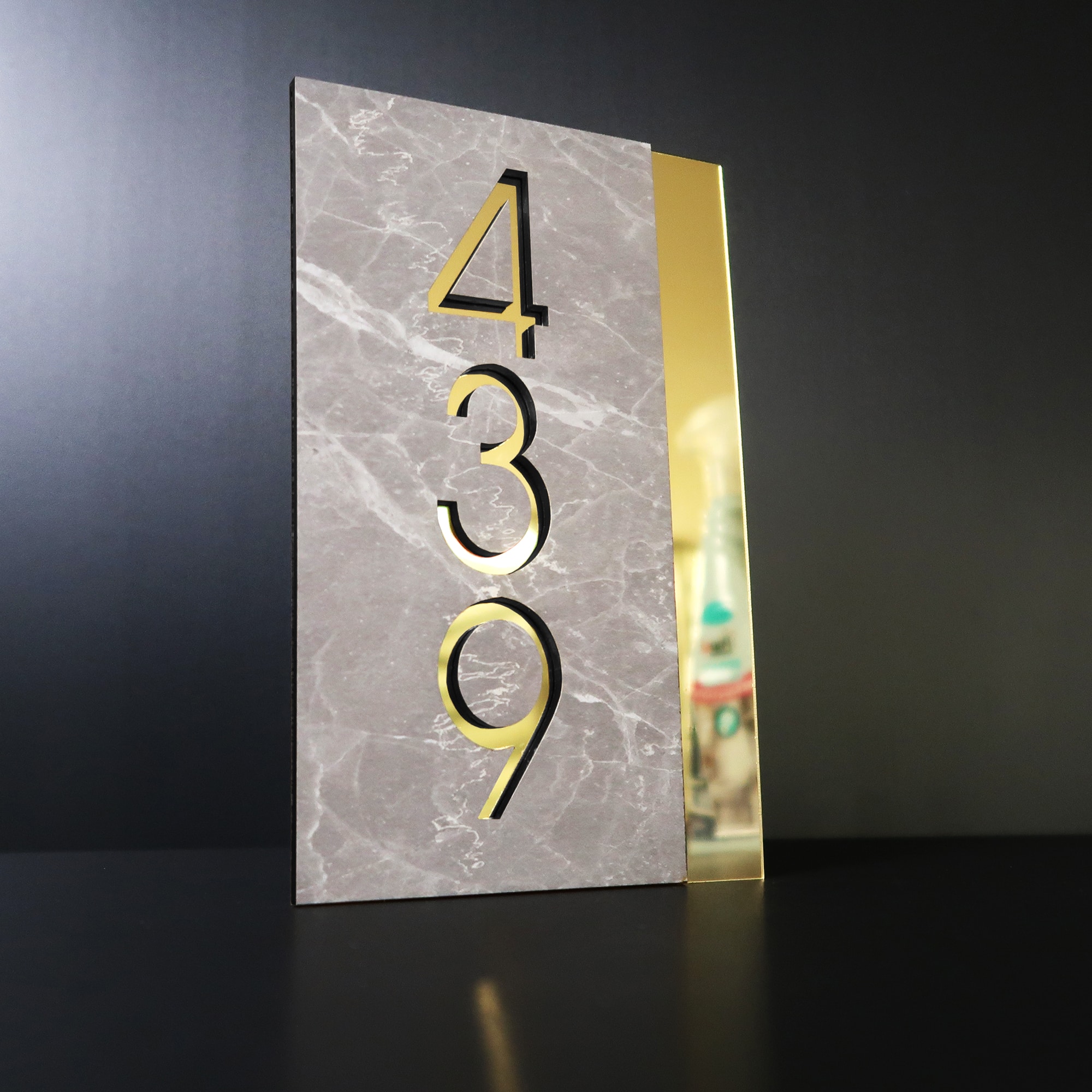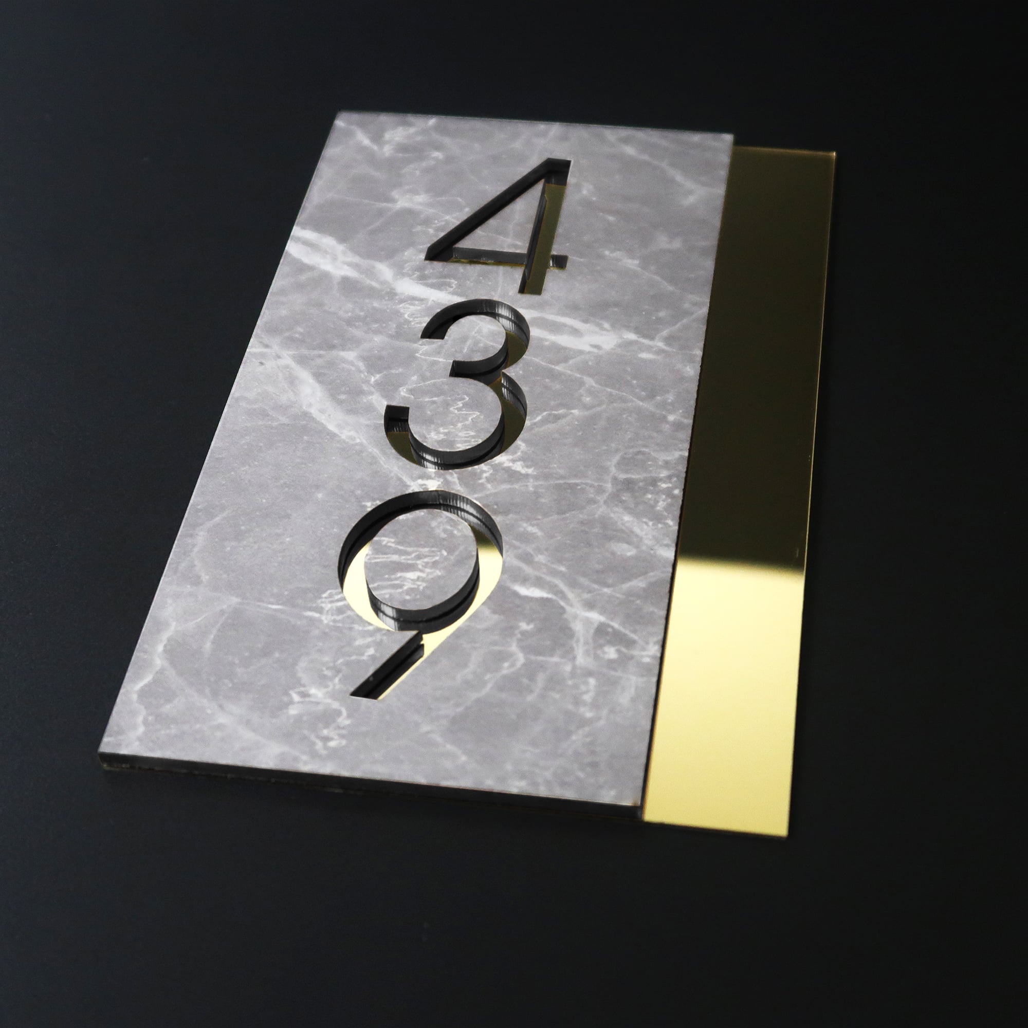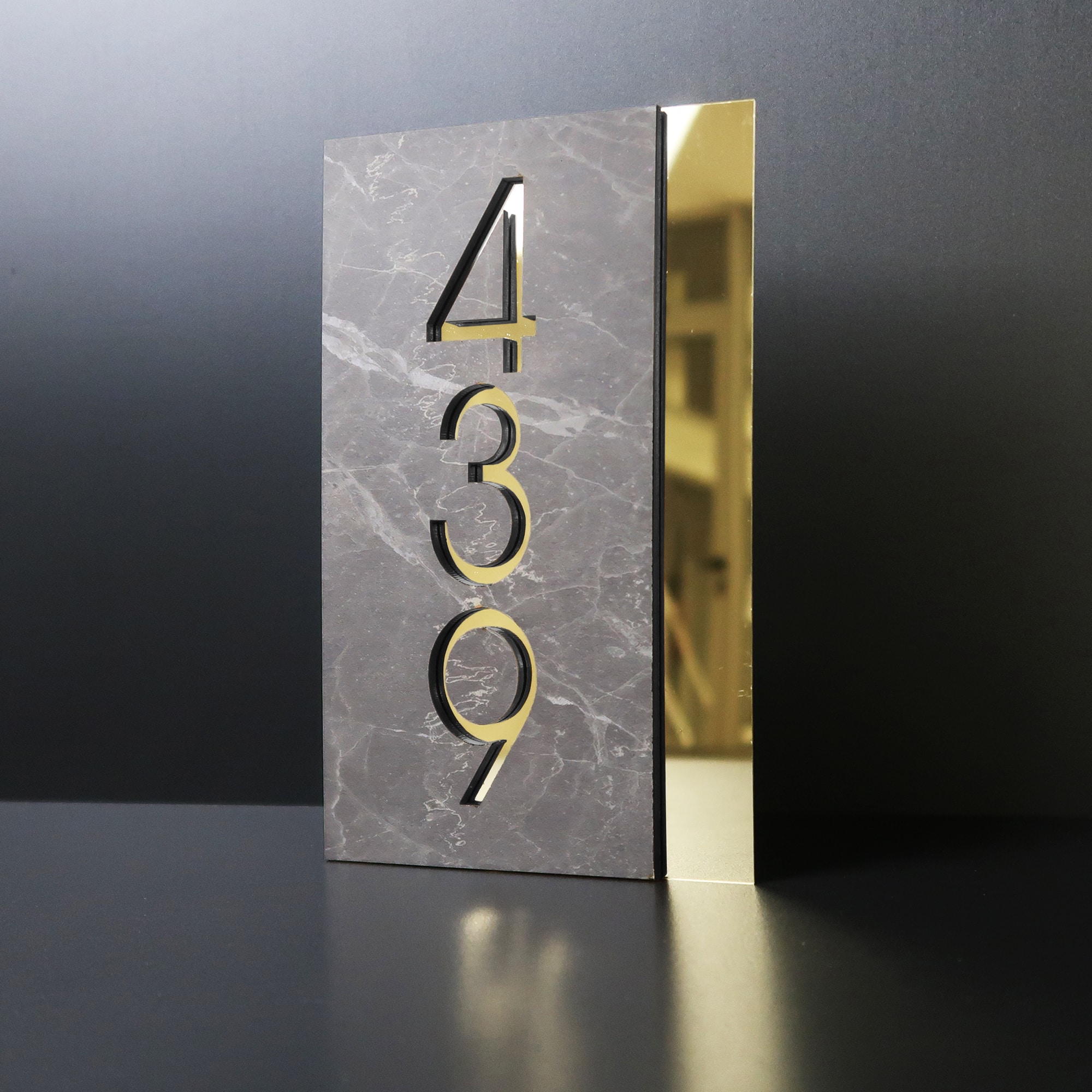 Gold and Etruscan Grey Stone Number Sign