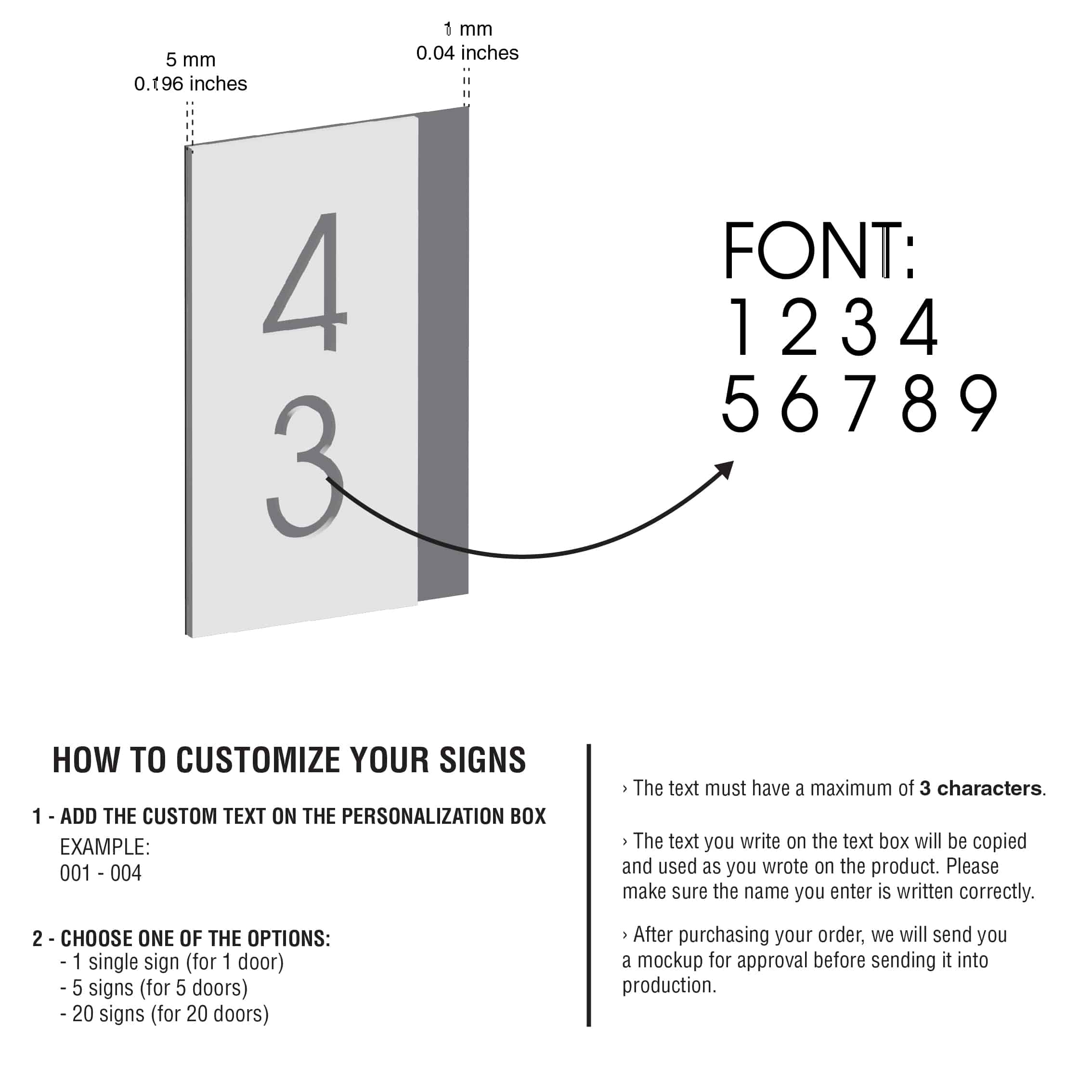 – The text/numbers you write in the text box will be copied and used as you wrote on the product. Please make sure the name you enter is written correctly.